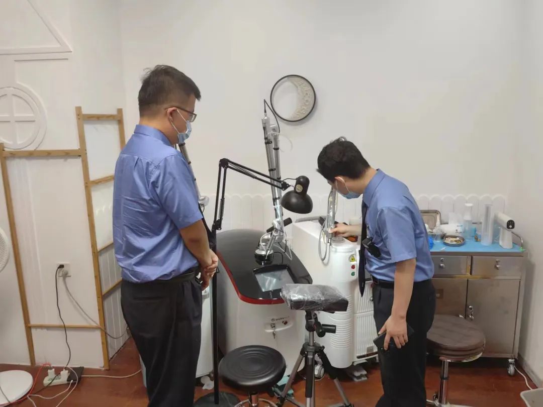 走访调查,小场所发现大问题。今年7月,南岗区院检察干警实地走访调查辖区多家文身经营场所,发现部分经营场所存在未取得《医疗机构执业许可证》的情况下,在某网络平台发布洗文身、打耳洞等团购项目,店内摆放洗文身激光设备等问题,对群众的身体健康构成严重威胁。对此,检察干警现场向文身从业人员普及相关法律法规,责令立即整改。